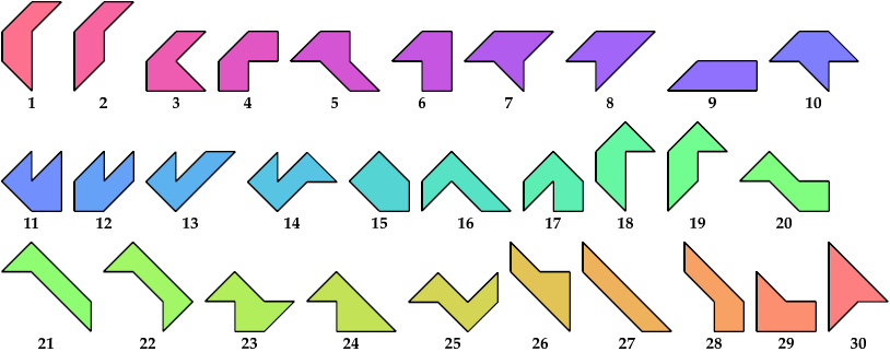 A scaled pentabolo is a pentabolo whose size may be altered without changing its shape. In geometric terms, it is a family of similar pentaboloes.