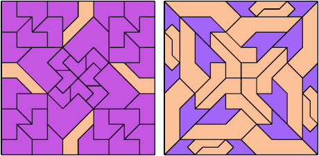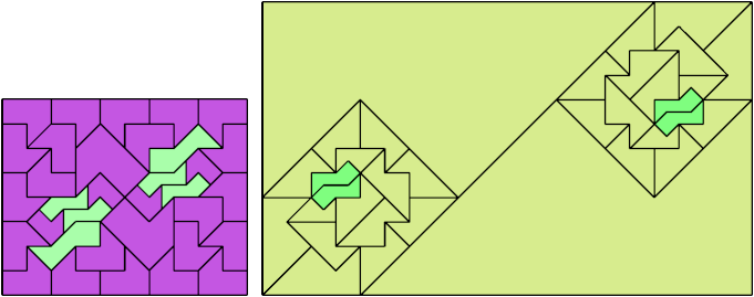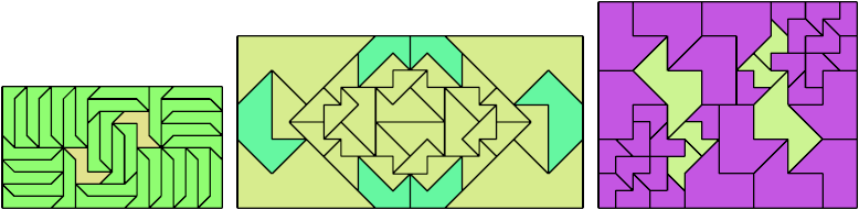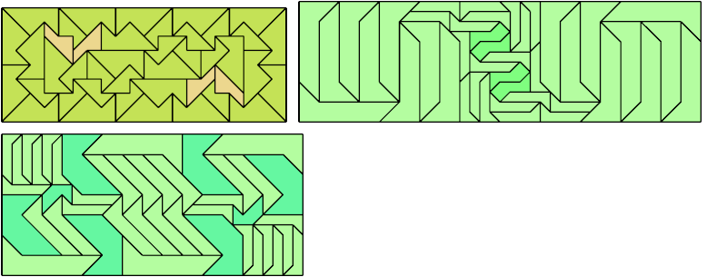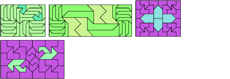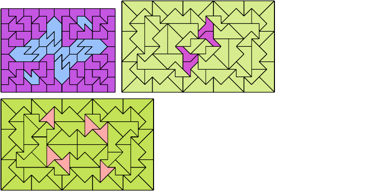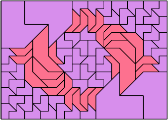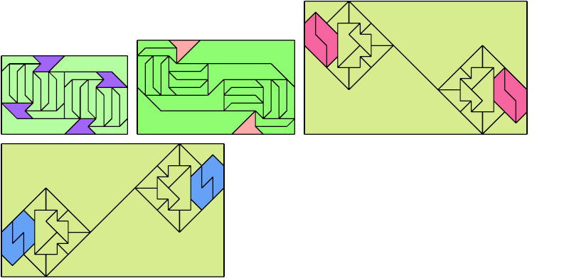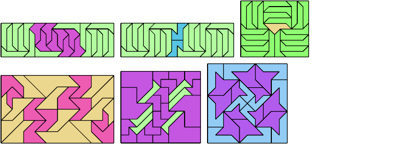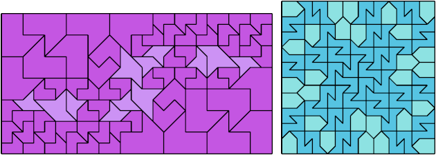 Here I show a minimal known rectangle that can be tiled by a pair of scaled pentaboloes, using at least one copy of each. If you find a solution with fewer tiles or solve an unsolved case, please write.