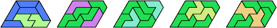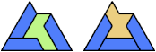 Here I show the smallest known pentagonal (five-sided) polyiamonds that can be formed by copies of a pentiamond and a heptiamond, using at least one of each. If you find a smaller solution, please write.
