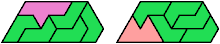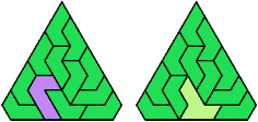 A heptiamond is a plane figure formed by joining 7 equal equilateral triangles edge to edge. There are 24 heptiamonds: