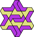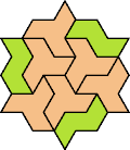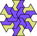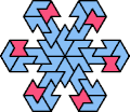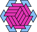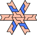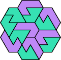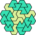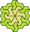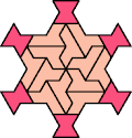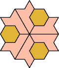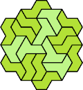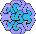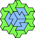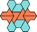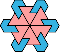 Here I show the smallest polyiamond with full symmetry and no holes that can be tiled by a hexiamond and a heptiamond, using at least one copy of each. The solutions shown are not necessarily uniquely minimal.
