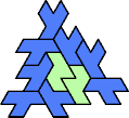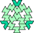 A tri-oddity is an arrangement of copies of a polyform with ternary rotary symmetry or better, using a number of copies that is not a multiple of 3.