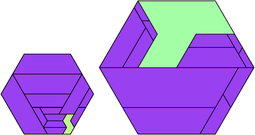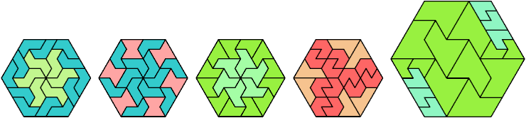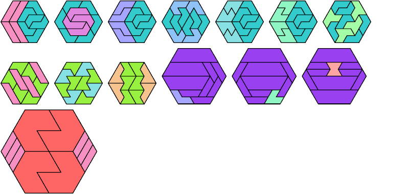 This table shows the fewest tiles known to be able to tile a regular hexagon.