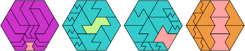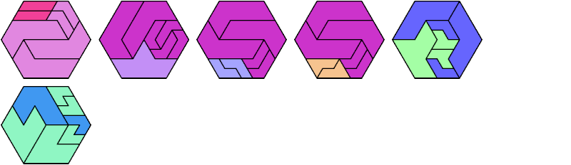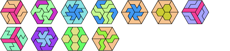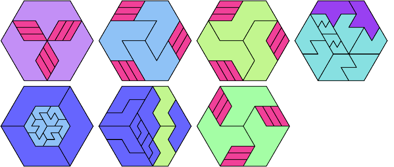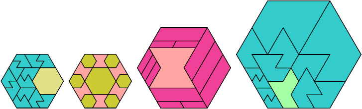 This table shows the fewest tiles known to be able to tile a regular hexagon.