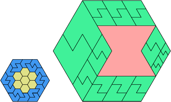 • Tiling a Regular Hexagon with a Scaled Pentiamond and Hexiamond