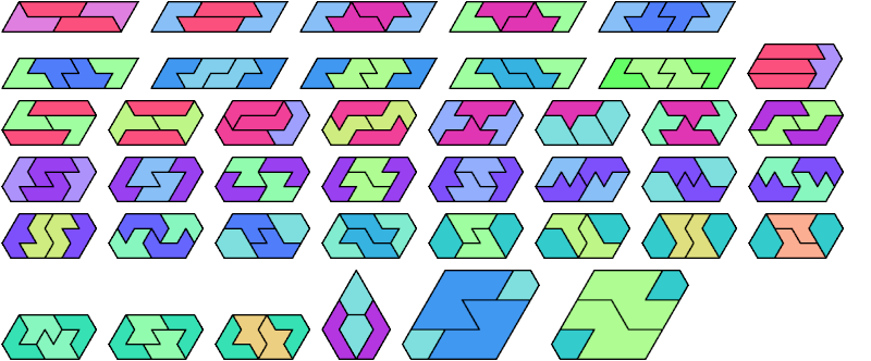 Here I show minimal known convex polygons formed by pairs of scaled heptiamonds. If you find a smaller solution or solve an unsolved case, please write.