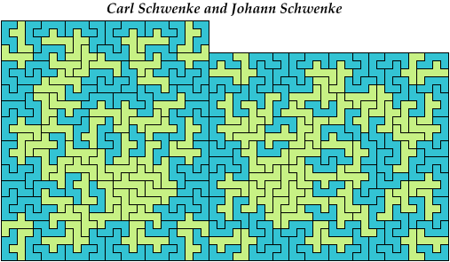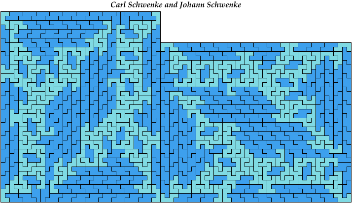 Many of the solutions shown were formed in this way, often from rectangular tilings discovered by Mike Reid. They are not all known to be the smallest possible. If you find a smaller solution or solve an unsolved case, please write.