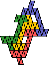 It uses an 18-gold. I made it by stretching a polyiamond tetrad in which the tile is rotated only by 180°. See Polyiamond and Polymar Tetrads.