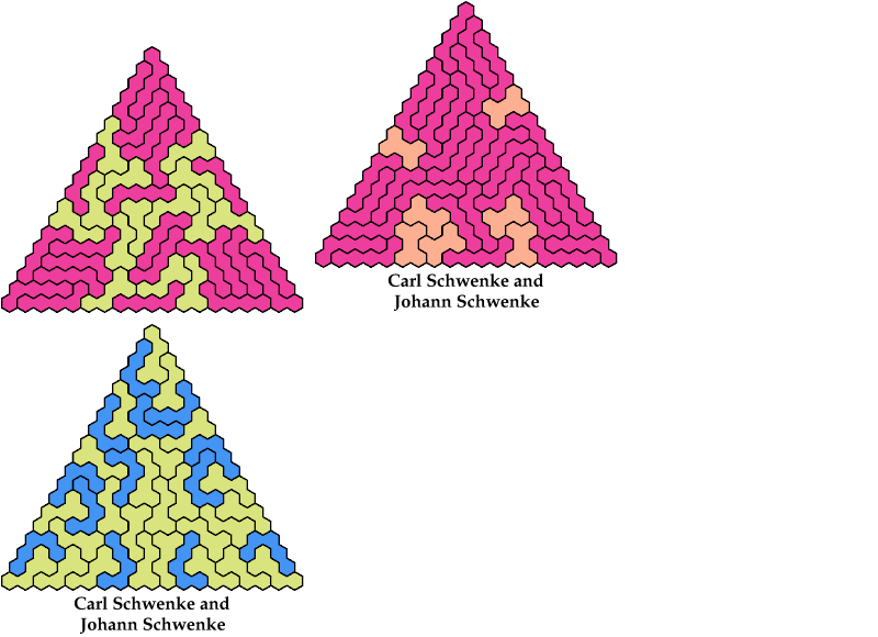 In March 2003, Erich Friedman's Math Magic studied the problem of arranging copies of a single polyhex to form a triangular polyhex.