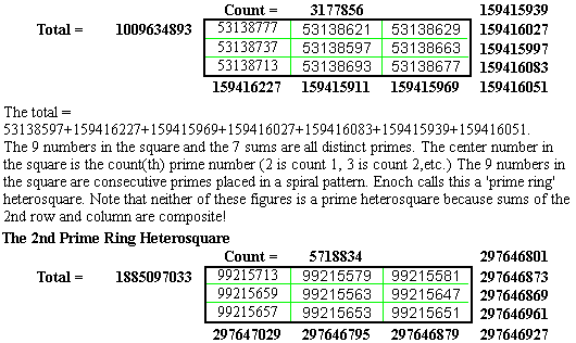 middle row and column, these squares are not necessarily PRIME heterosquares.