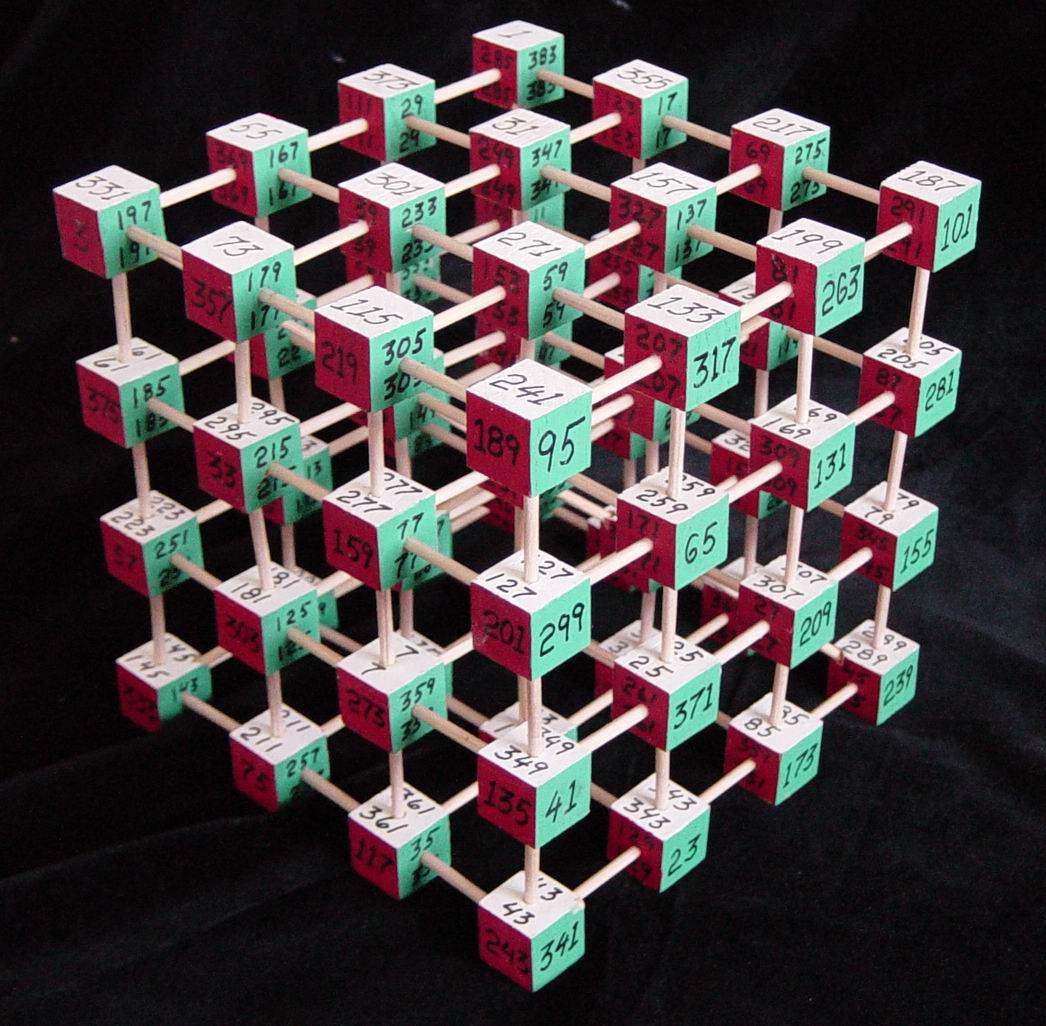 This is a 3-D model of an order-4 pandiagonal magic square. The wooden