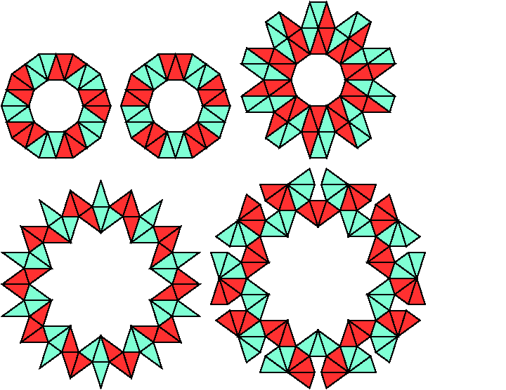 Here are minimal known Baiocchi figures for polygolds with from 1 to 4 cells. Not all these solutions are uniquely minimal.