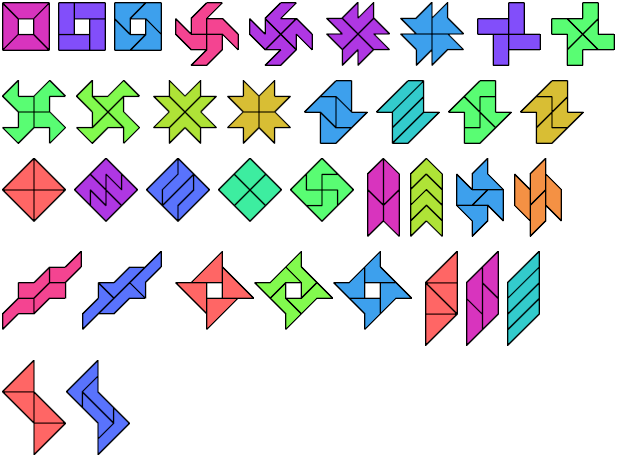 Here are minimal compatibility figures for tetraboloes. Not all are uniquely minimal. They first appeared in Erich Friedman's Math Magic for September 2004, and Dr. Friedman found all but the three largest.