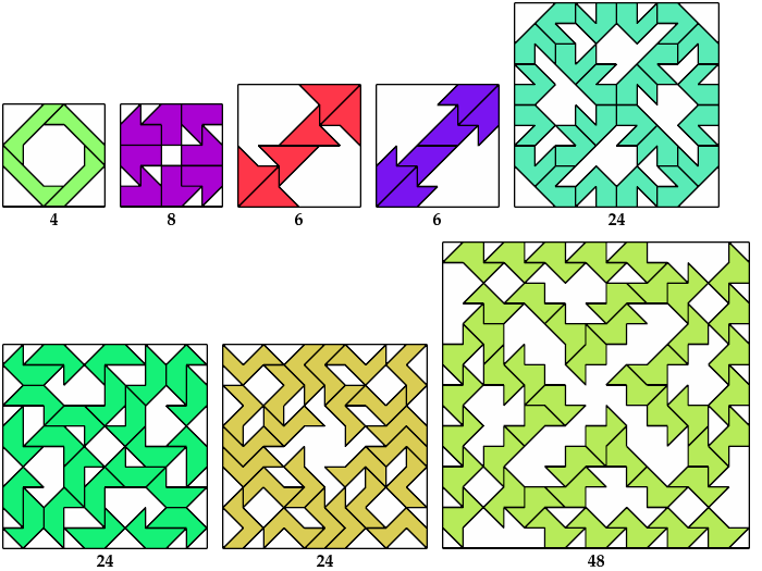 A polyomino magic square is a square grid in which copies of a given polyomino