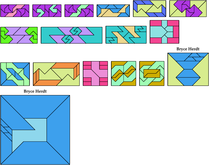 Bryce Herdt improved several solutions. Carl Schwenke and Johann Schwenke solved unsolved cases and improved several solutions.