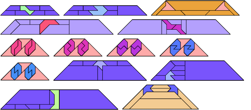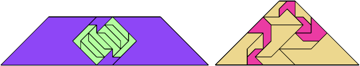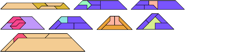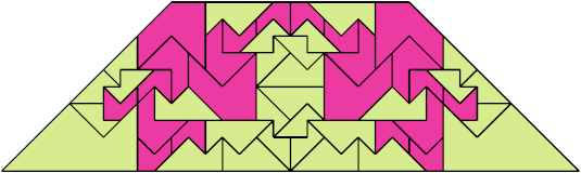 Theoretically, scaled pentabolo 24 and any other scaled pentabolo can together tile an isosceles trapezium. I do not have tilings for all such pairs of scaled pentaboloes.