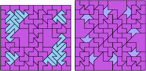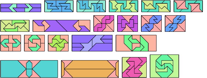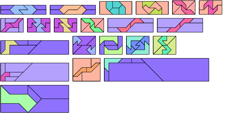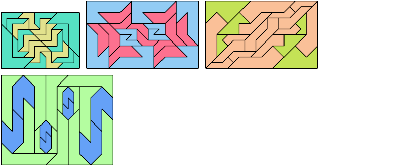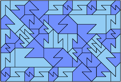 Here I show a minimal known rectangle that can be tiled by a pair of scaled pentaboloes, using at least one copy of each. If you find a solution with fewer tiles or solve an unsolved case, please write.