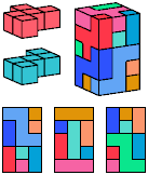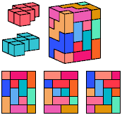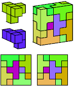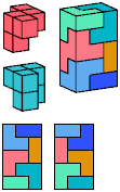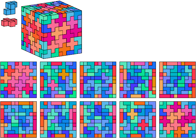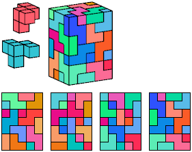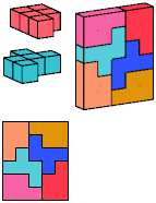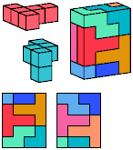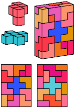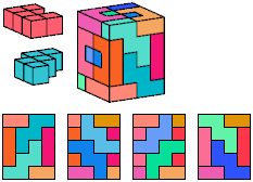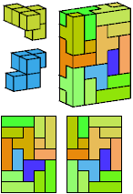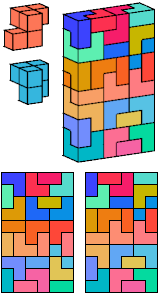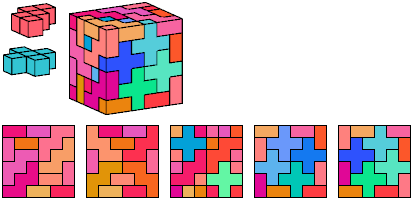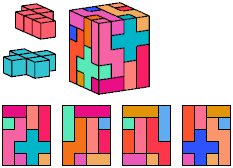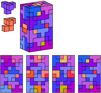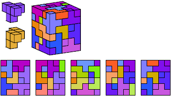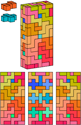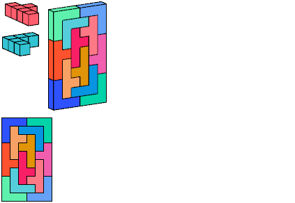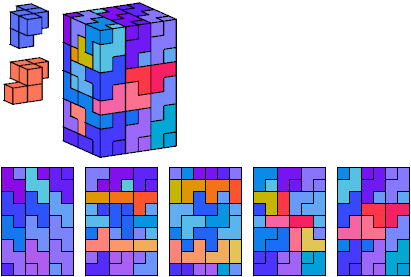 All but two of the pentacubes, G and X, can tile a rectangular prism, or box. All but one pair of pentacubes, G-G′, can jointly tile a box.