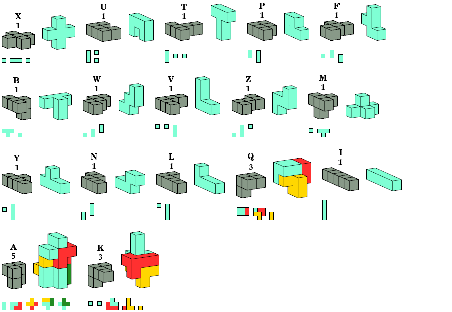 A pentacube is a solid made of five cubes joined