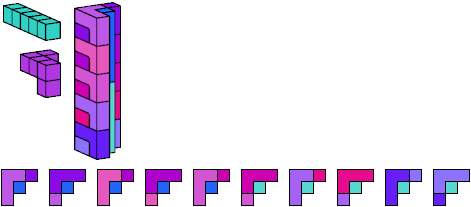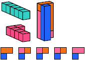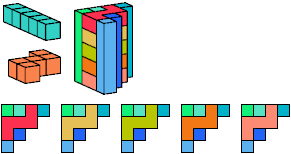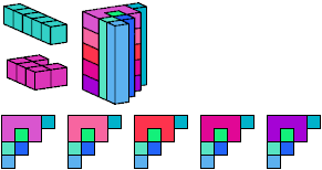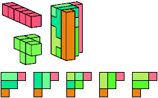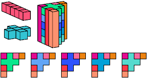 A pentacube is a solid made of 5 equal cubes joined face to face.