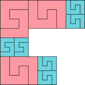 For irreptilings of polyforms other than polydoms, see Erich Friedman's Math Magic for October 2002. For more information about irreptiles, see Dr. Karl Scherer's book A Puzzling Journey to the Reptiles and Related Animals.