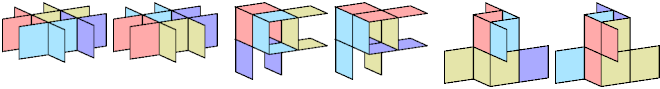 three unit squares edge to edge at straight or right angles in three dimensions.