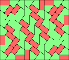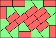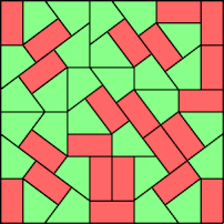 Of the 13 didoms, the Kite is unique in that it does not conform to a square grid. So any tiling that uses Kites will have grid jumps. The Brick is simply a polyomino with 2 cells, a domino. In Livio's three-grid construction above, the pieces can be joined in pairs to form 24 Kites and 26 Bricks.