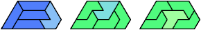 A hexiamond is a plane figure formed by joining 6 equal equilateral triangles edge to edge. There are 12 hexiamonds: