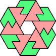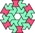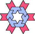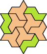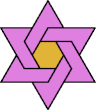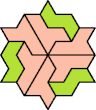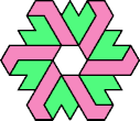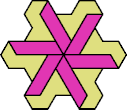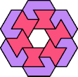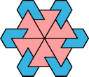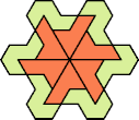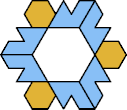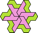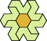 Here I show the smallest polyiamond with full symmetry that can be tiled by a hexiamond and a heptiamond, using at least one copy of each. The solutions shown are not necessarily uniquely minimal.