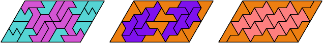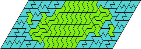 that can be formed by copies of two hexiamonds, using equally many of each.