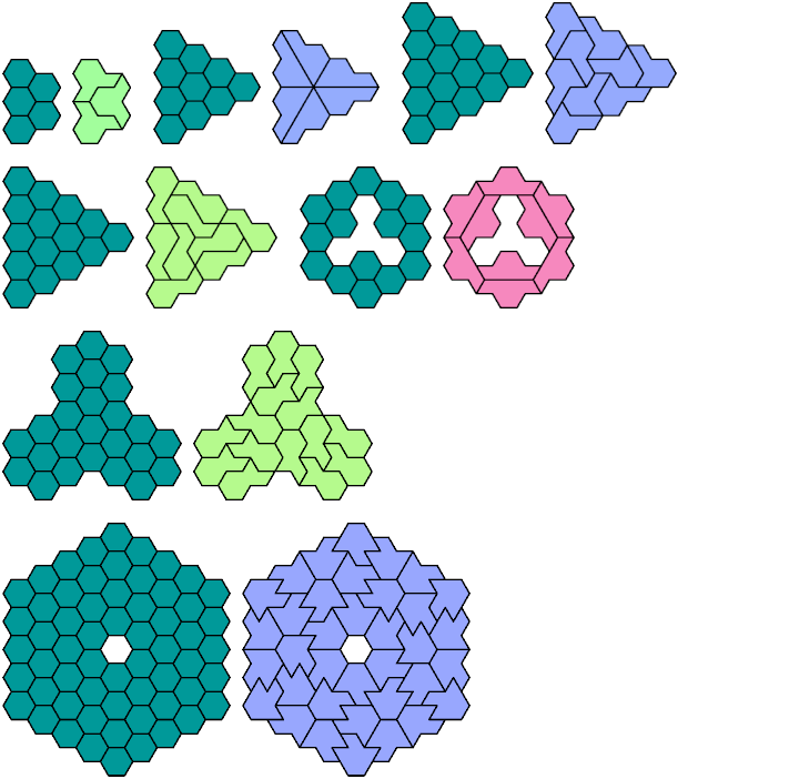 The compatibility problem is to find a figure that can be tiled with each of a set of polyforms. Here I show minimal known compatibility figures for the Hexagon hexiamond with other polyiamonds. In other words, these are the smallest known polyhexes that can be tiled with given polyiamonds.