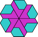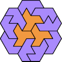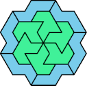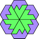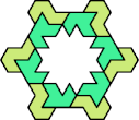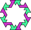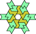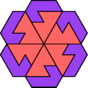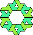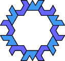 A Baiocchi Figure is an arrangement of copies of a polyform to achieve the highest symmetry class for its type of polyform. For polyiamonds, this means 12-fold symmetry, 6-rotary and mirror.