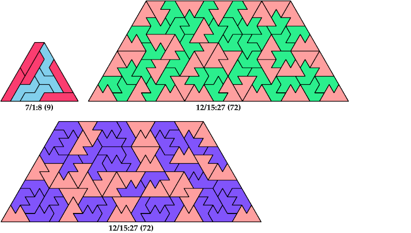 This parallelogram can be joined to the trapezium to make a new trapezium with bases 191 and 212, tiled with both the I and U heptiamonds.