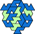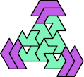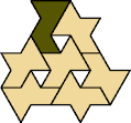 A tri-oddity is an arrangement of copies of a polyform with ternary rotary symmetry or better, using a number of copies that is not a multiple of 3.