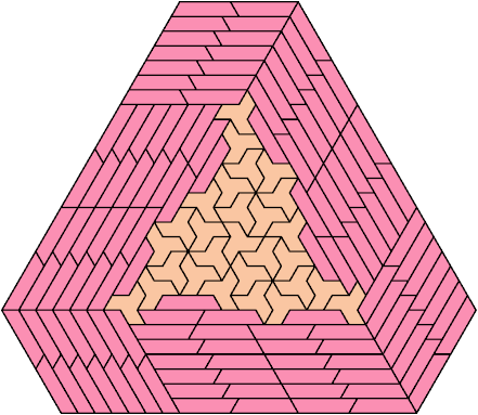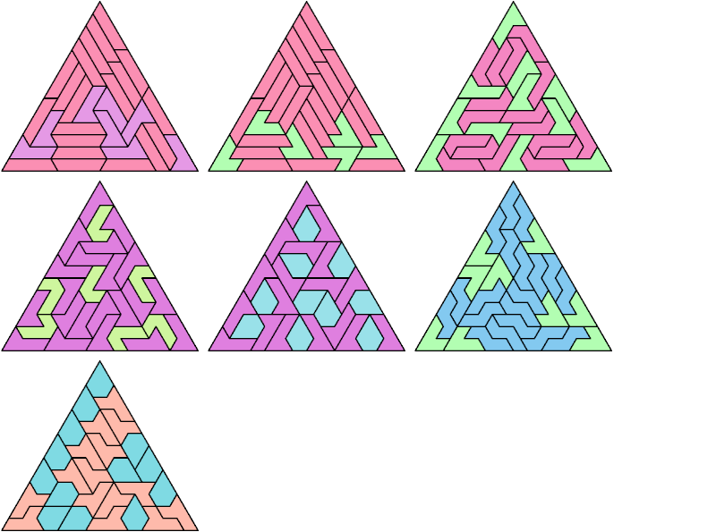 Here I show the smallest known badges that can be tiled by copies of two heptiamonds, using at least one of each. If you find a smaller solution, please write.