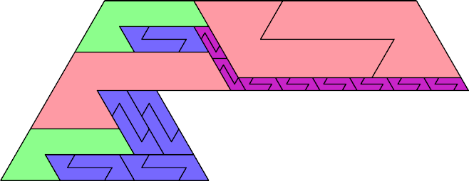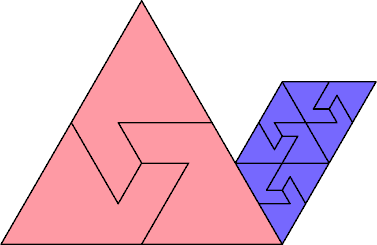 See also Polydrafter Irreptiling. For irreptilings of polyforms other than polyiamonds, see Erich Friedman's Math Magic for October 2002.