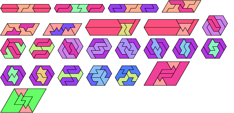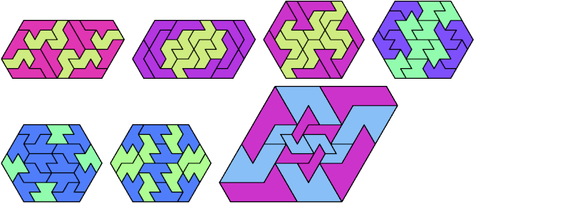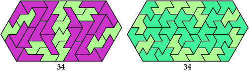 Here I show minimal known convex polygons formed by pairs of scaled heptiamonds. If you find a smaller solution or solve an unsolved case, please write.