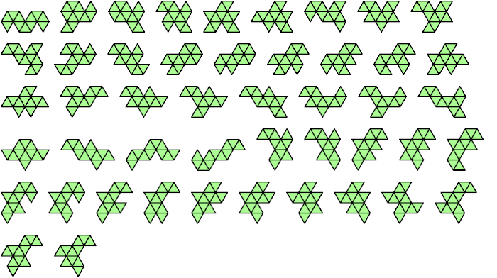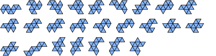 A polyiamond is a figure made of equal equilateral triangles joined edge to edge. A unitary polyiamond is one whose edges all have length 1.