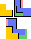Here I show only dissections of the monomino, domino, trominoes, and tetrominoes. For dissections of pentominoes, see Globular 3-4-5 Pentomino Dissections.