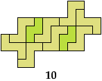 A pentomino is a figure made of 5 squares joined edge to edge. There are 12 such figures, not distinguishing reflections and rotations.