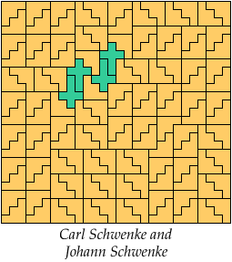 Mike Reid found the last two tilings. Patrick Hamlyn independently found the solutions with 48 or fewer tiles. Carl Schwenke and Johann Schwenke found improvements, and pointed out that one of my tilings at Andrew Bayly's Blog improved on the tiling that I had here.