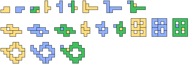 Here I show minimal known solutions for polyominoes of orders 3, 5, and 7.