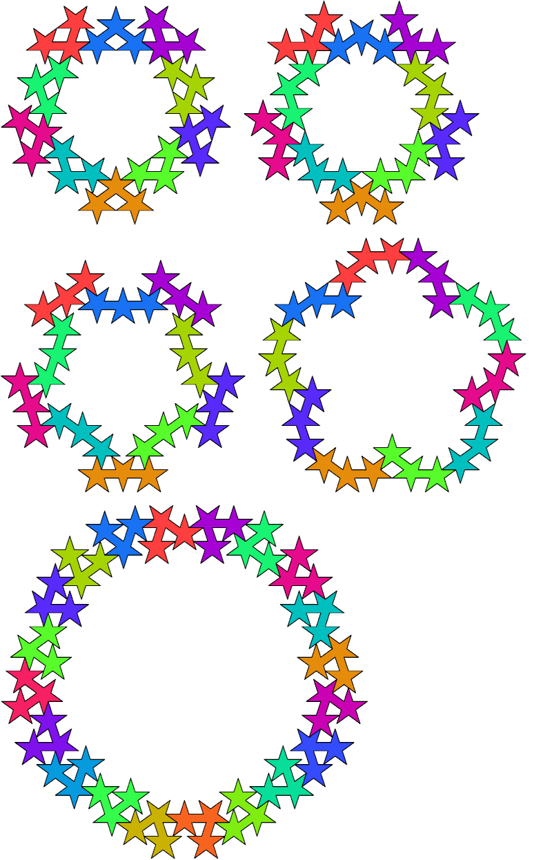 For polypentagrams, that means the symmetry of a regular pentagon,