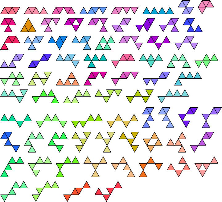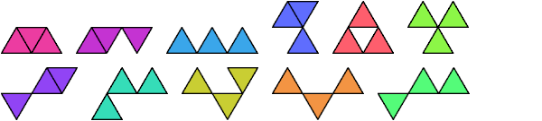 A polyming is a figure made of equal equilateral triangles on the polyiamond grid, joined along edges or at vertices. It is a generalization of a polyiamond. (In the Online Encyclopedia of Integer Sequences, David Bevan calls polymings polyglasses.)