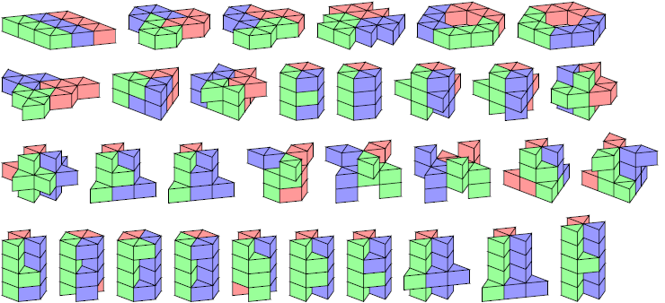 Here are minimal known Galvagni figures for polyprisms of orders 1 to 6. Polyprisms may be reflected. Black polyprisms have no Galvagni figures. Gray polyprisms have no known Galvagni figure. Solutions shown are not necessarily unique.