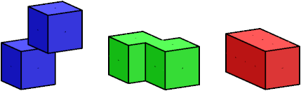 The diagrams below show all two-sided polyquoins with 1, 2, or 3 cells.