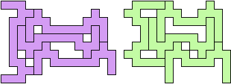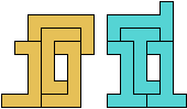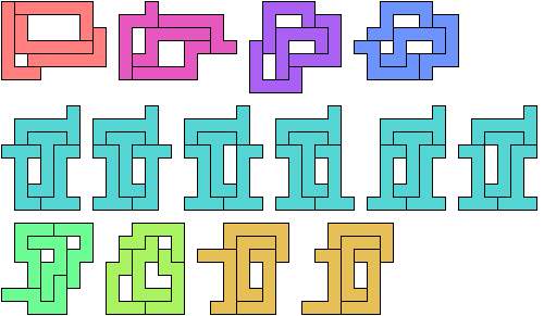 The smallest tetrad for a polyomino with birotary symmetry also uses 13-ominoes: