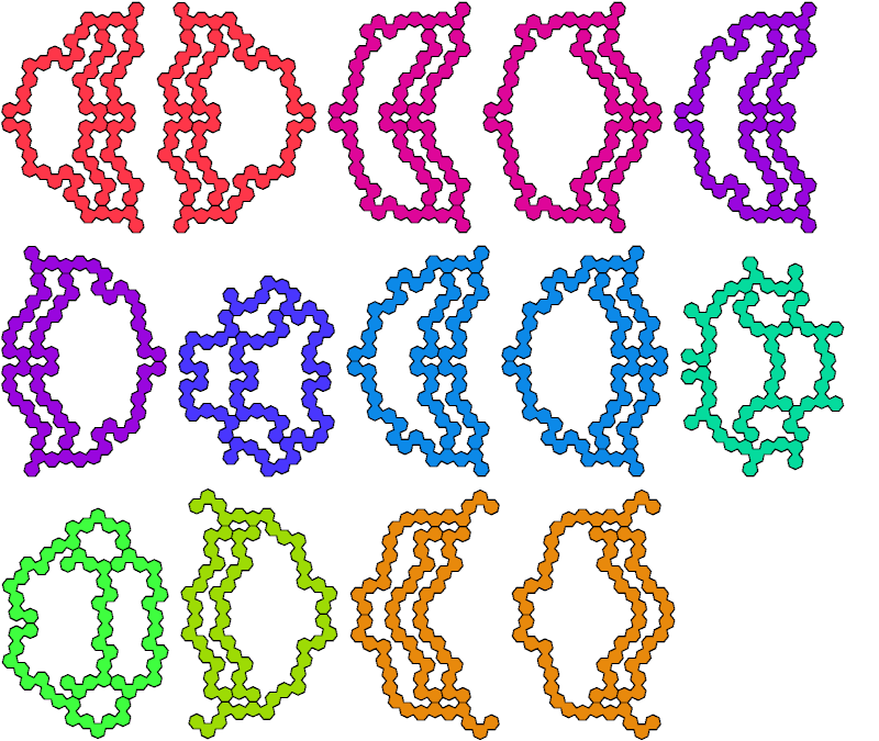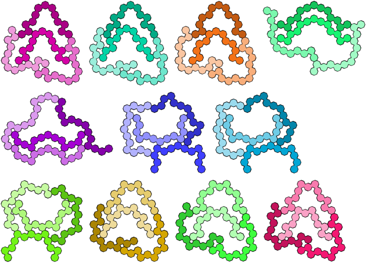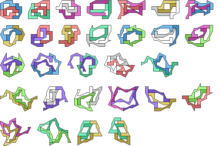 Dr. Karl Scherer found this holeless tetrad for a symmetric polyabolo. It uses a 278-abolo with only 27 edges: