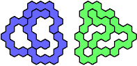 The smallest polyhex tetrads use tetrahexes. The first, by Scott Kim, is from Gardner's book.