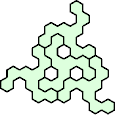 The smallest tetrad for polyhexes with ternary symmetry uses 9-hexes: